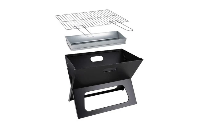 La griglia è caratterizzata dal suo design nero alla moda. Questo speciale design triangolare lo fa anche stare saldamente sulle sue gambe. Certo, questo è sempre bello quando si ha a che fare con il fuoco e il cibo. La griglia da tavolo è dotata di una ciotola per il fuoco rimovibile in cui si mettono carbonella o bricchetti. La griglia in acciaio inossidabile ha delle maniglie rimovibili per non scottarsi le mani. L’apertura è molto veloce e si ripiega in un attimo.