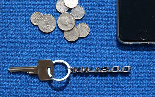 Elegante portachiavi con la leggendaria scritta “VW1200” in alluminio zinco lucido