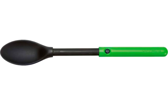 Cucchiaio estensibile e robusto in plastica alimentare senza bisfenolo A (BPA). Ideale per consumare pasti da buste stand-up. Può essere smontato per la pulizia.
