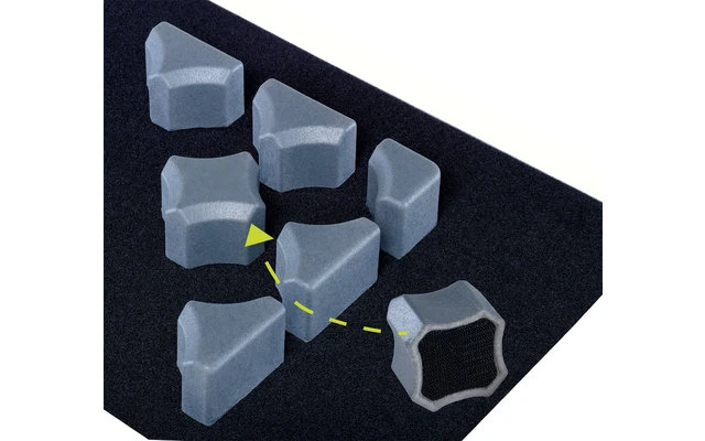 Ciò di cui avete bisogno è la piastra di base in velluto (che può essere tagliata individualmente su misura) e i moduli di fissaggio corrispondenti, che sono fissati individualmente alla piastra di base per mezzo di un sistema di velcro. I moduli del sistema Vario possono essere riposizionati in qualsiasi momento se necessario.