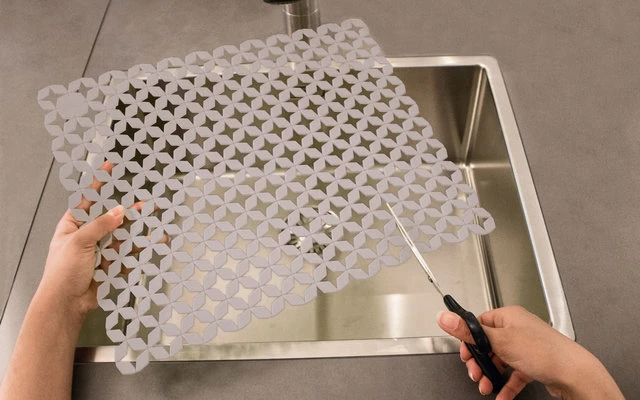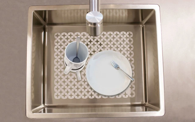 Il tappetino per lavello SPACEWONDER con il suo design efficace protegge il tuo lavello e le tue stoviglie da graffi e crepe. Se lo si desidera, può essere tagliato con le forbici.