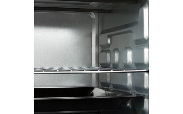 Questo forno compatto di 19 litri di capacità è ideale per grigliare, cuocere al forno e tostare. Il forno è dotato di 6 impostazioni di calore, timer da 60 minuti, teglia e griglia.