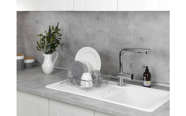 Il cesto scolapiatti in metallo cromato fornisce un’estensione semplice e salvaspazio al ripiano del lavello per piatti, tazze e bicchieri. I piatti lavati hanno un posto ideale per asciugarsi rapidamente. Come accessorio funzionale, non solo arricchisce il lavello in cucina, ma può essere utilizzato anche nella zona cucina della casa estiva o della casa mobile.